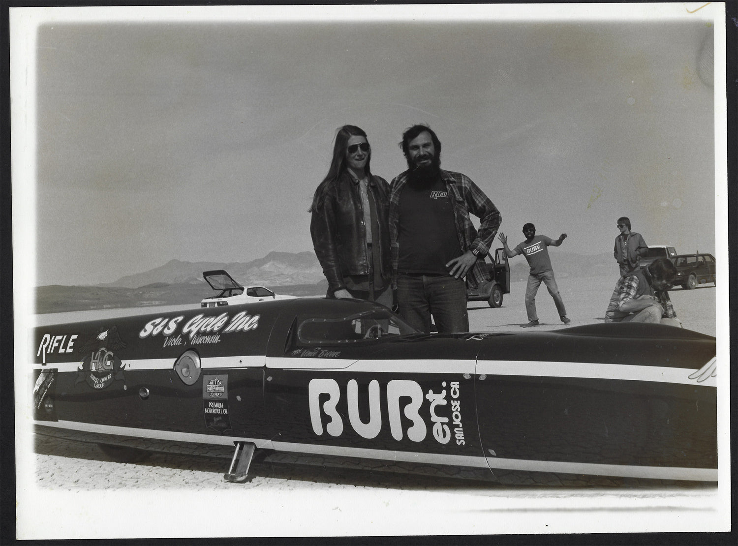 His most impressive showing was an almost fully streamlined Yamaha 185 that achieved 372 mpg in competition, and over 410 mpg in testing. The body design was sold to Honda to further develop, and the bike was and still is displayed at the Smithsonian in Washington DC. Other aerodynamic endeavors included design for the body of Dennis Manning’s Landspeed Streamliner, “Tenacious,” and the S&S Harley Davidson’s, “Tramp III,” Landspeed bike.