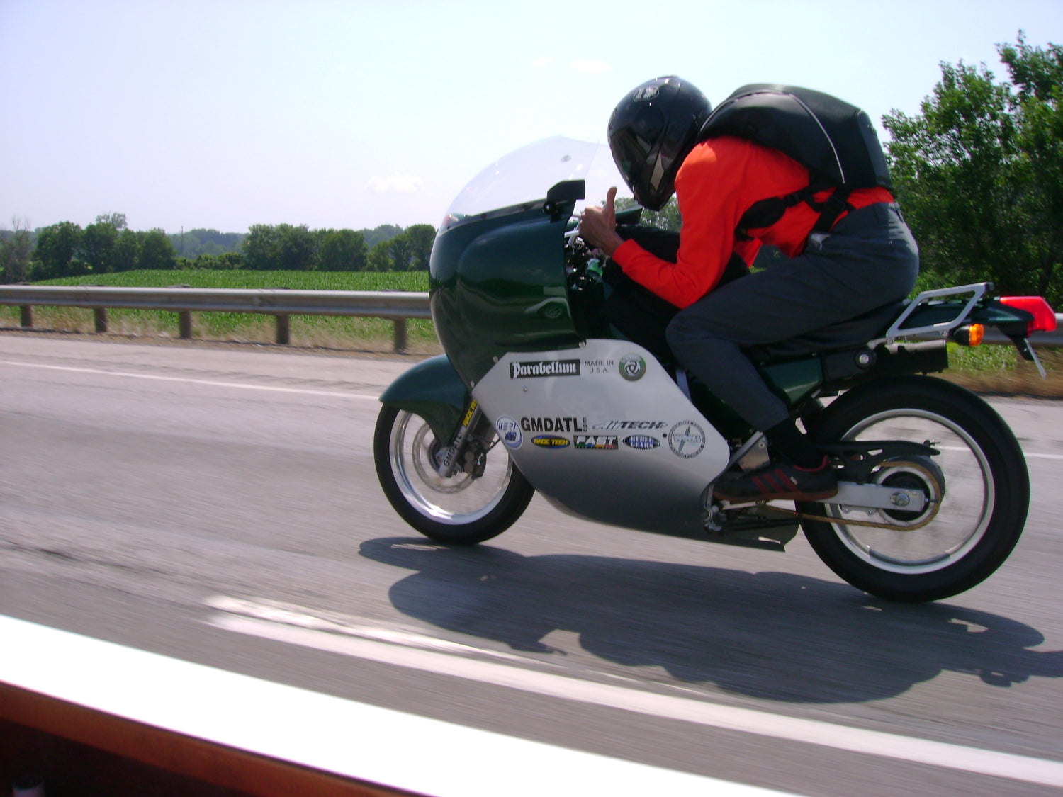 Landing his dream job as a designer for Vetter Fairing Company relocated Charly to Rantoul Illinois just out of college. Here he worked on the design team for various products including the Triumph Hurricane, the Windjammer fairing, saddlebags, tail trunk, and a sidecar. Vetter Co-workers introduced Charly to roadracing at which he became quite successful. Charly also fell in love with motorcycle touring in this era quickly racking up over 100,000 motorcycle miles.