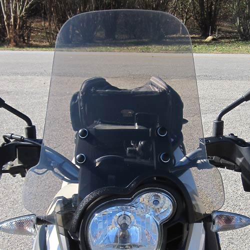 The new Parabellum Rally windshield for the 2011 to present BMW G650GS is perfect for those riders that want to get the most out of their bikes off-road while still wanting significant on-road wind protection. With an upright angle similar to Dakar Rally fairings, the rider will be protected from off-road debris as well as turbulent wind on-road. The Rally shield was designed for riders using their G650GS half on and half off-road. This wind guard is 16 inches wide at the bottom tapering to 11 inches wide at the top and made of the same 3/16 inch cast acrylic as the Touring version.