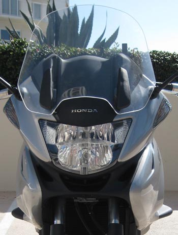 The overall shape of the Honda Factory shield is pretty good. It’s just a little too low and narrow. Parabellum’s NT700V Replacement Shield is 20 inches wide at the widest point which is 2 inches wider than the stock Honda shield. Parabellum’s shield is offered in two taller heights and is made of D.O.T. approved 5mm (3/16 inch) military grade cast acrylic, specified for optical clarity. Our shield is a direct replacement and mounts to the stock mounts.