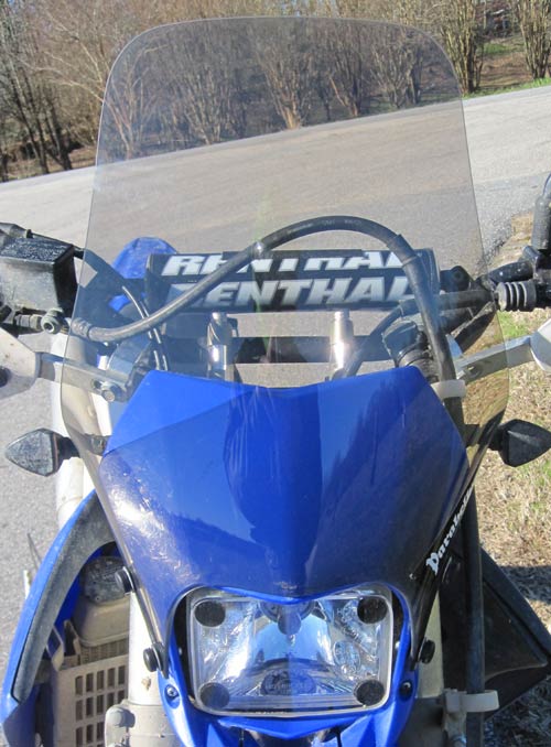 The Parabellum Rally shield for The 2008-Present Yamaha WR250R/X is an upright rally type windshield inspired by past and present Dakar race bikes. The Rally shield looks aggressive and performs well under all types of riding although designed primarily for offroad and dualsporting adventures. On the street this rally screen keeps unwanted air pressure off the rider’s chest while still allowing ones head to be in clean undisturbed air. Offroad, the rally shield protects riders from roost, rocks, briar patches, mountain laurel thickets and low lying branches one may encounter on the trail. This rally windscreen is perfect for those seeking protection without losing any technical riding capabilities. Duck behind it in the rain/snow or going through thick brush. Mount your GPS behind it for easy viewing while keeping it protected. This shield mounts simply to the stock headlight shroud using minimal hardware to keep weight down. The Rally Windshield measures 13.5 inches tall, 11.5 inches wide at the bottom, and 8.5 inches wide at the top. Made from 1/8 inch acrylic and offered in clear or tint.