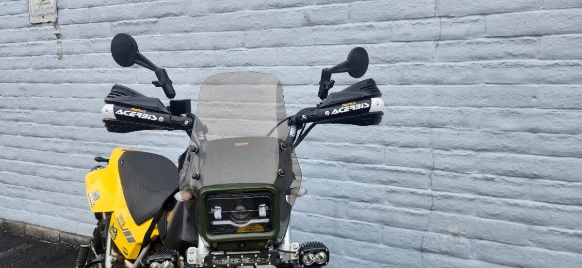 Parabellum LTD. Has finally expanded the Rally Shield line by developing a windshield for the ever-mighty, cult classic, Yamaha TW 200 “T-Dub”. This is an upright Dakar Rally inspired shield designed to protect the rider without interfering with off-road riding. For on-road riding the Rally shield protects the rider’s core from fatiguing air blasts while keeping the head in clean air. Duck behind it in the cold or the rain to keep from experiencing the brunt of the elements. During off-road riding the Rally windshield protects the rider from any amount of mud, dust, roots, rocks, or branches without becoming invasive. Whether standing on the pegs or ducking behind it, you will be impressed at the protection it offers.